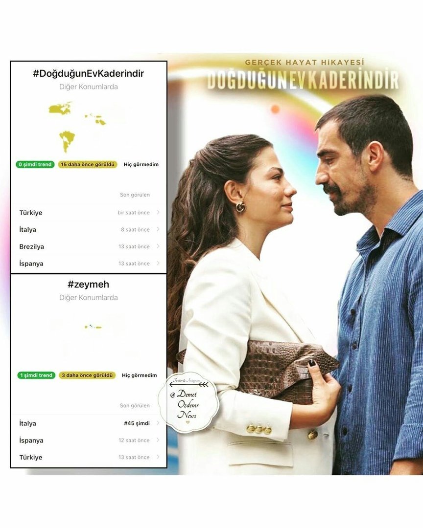 Вчерашняя 13 серия #DoğduğunEvKaderindir и хештег #ZeyMeh были в тренде стран Турции, Италии, Испании и Бразилии.