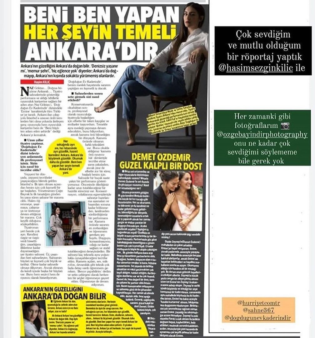 Naz Goktan дала интервью для прессы и в своём репортаже она рассказала о сериале и взаимодействии с командой сериала #DEК , а также сказала несколько слов о Demet Özdemir