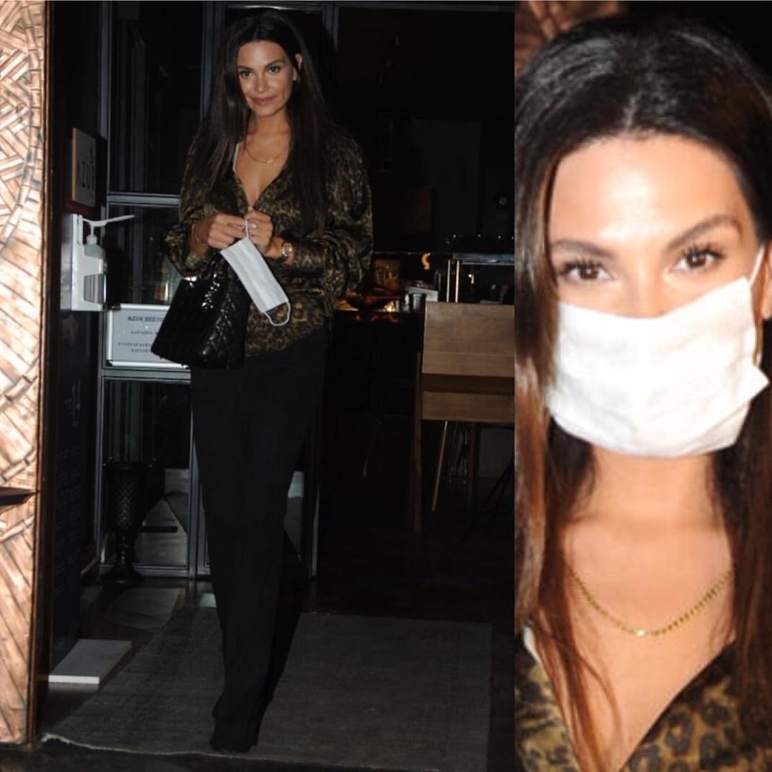 Алмеда Абази, съпругата на актьора Толгахан Сайъшман, беше отразена върху обектива на мястото, наречено Azur в Yeniköy предишната вечер.