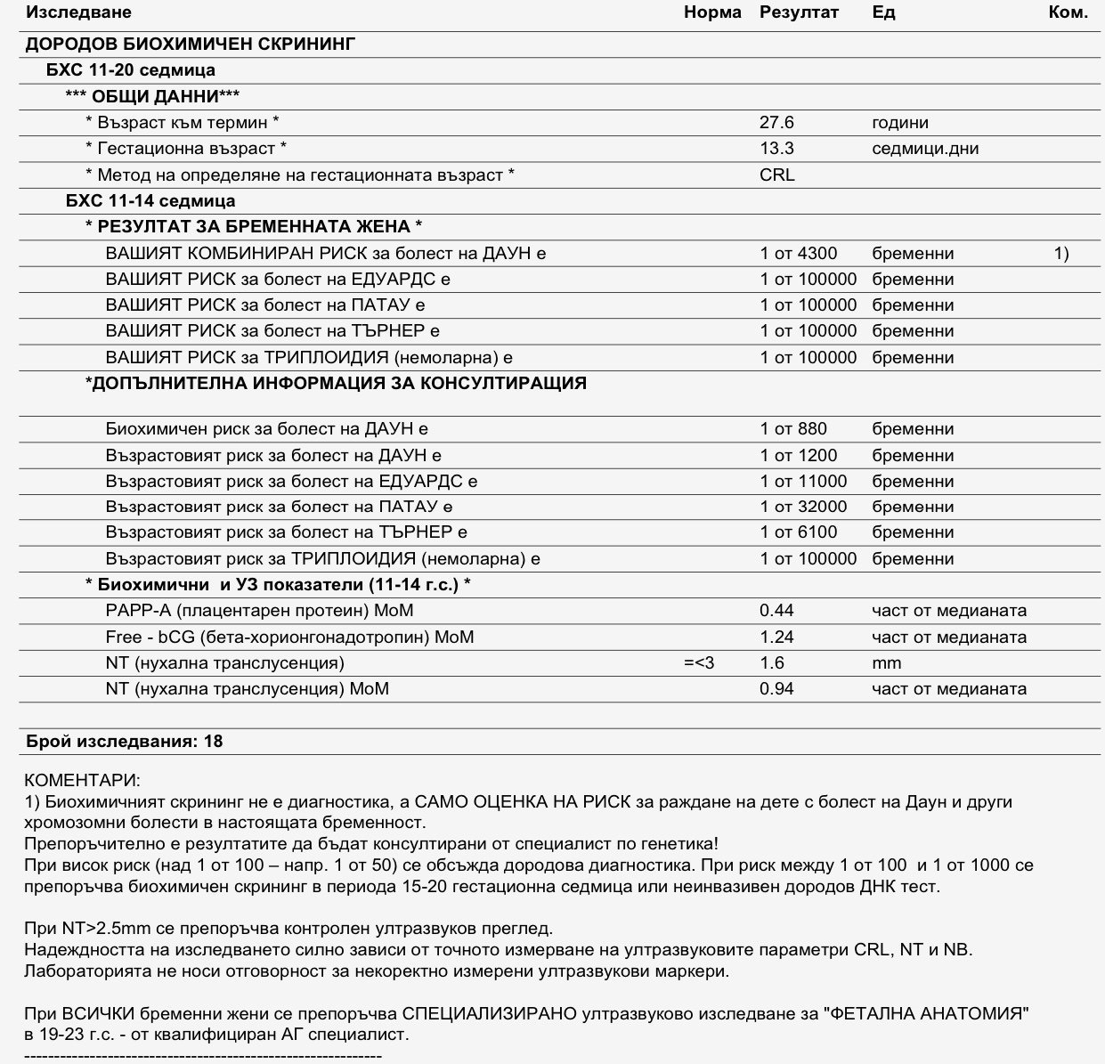 На листа от последния ми преглед пише "с препоръка за ранен скрининг" и името на доктара, при който да отида, но тъй като правих неинвазивен генетичен тест нямам нужда от типичния БХС. По-скоро очаквам нещо, като това,през което е минала reni.2020 днес, но ще оцелея до утре, ще разбера и дай Боже всичко да е наред, а после ще споделя.