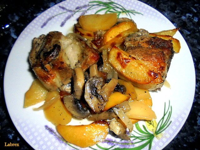 У нас вечерята: салата, свинско с картофи и гъби на фурна