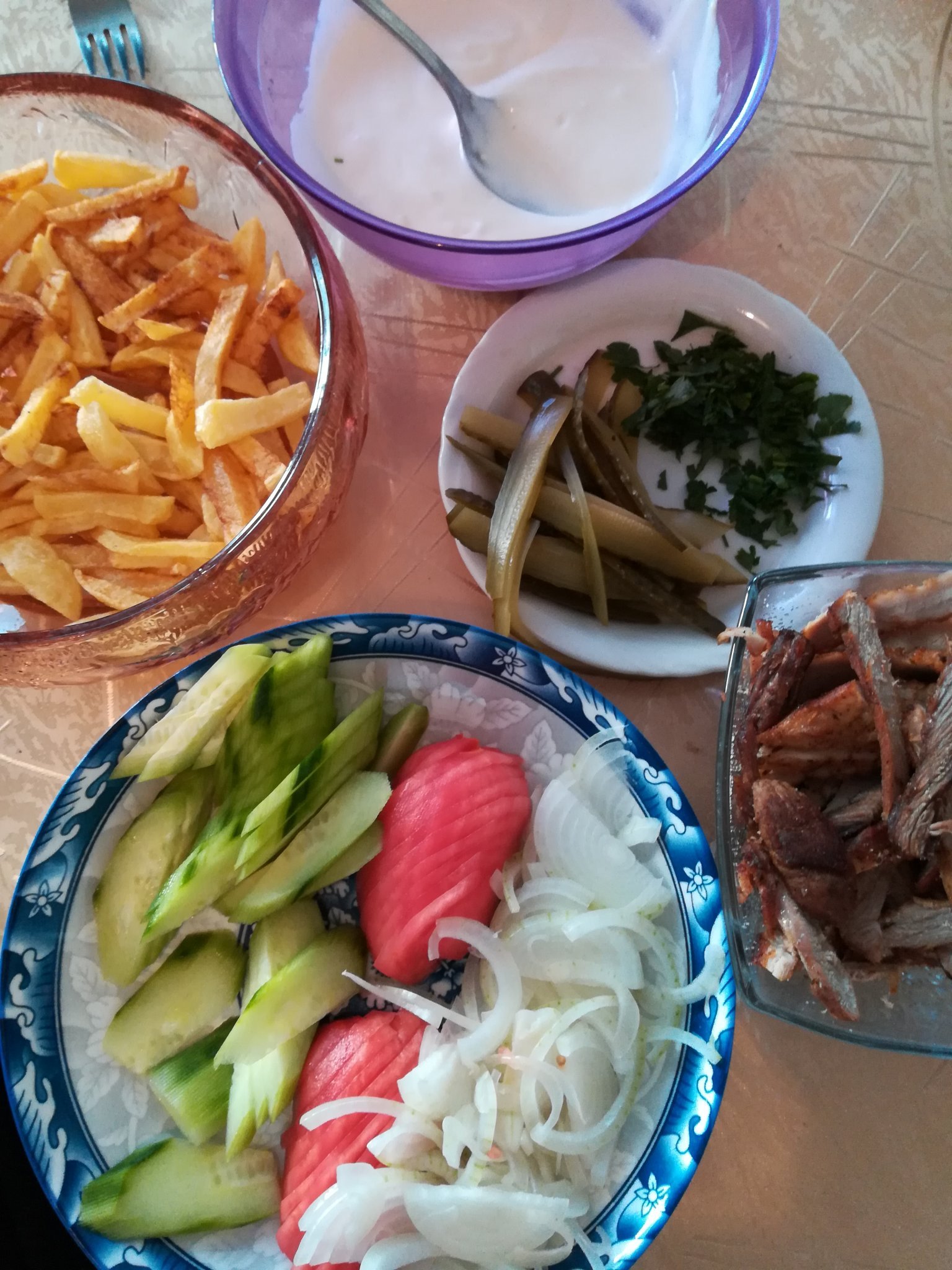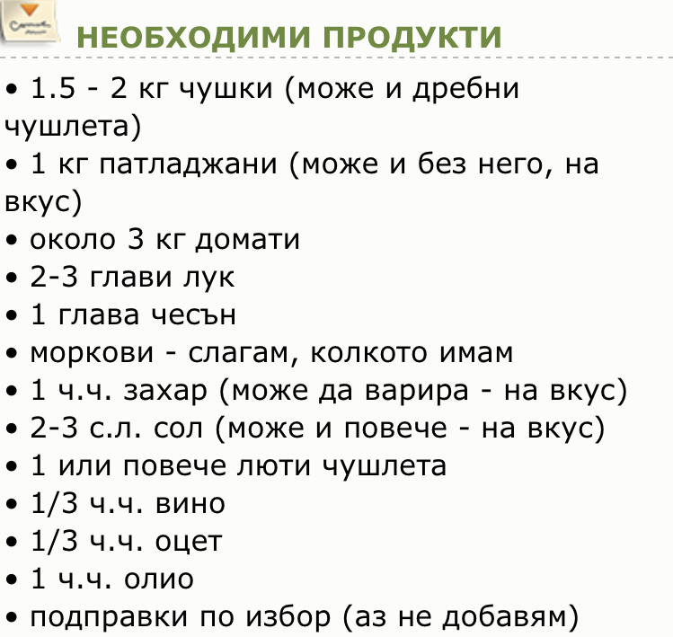 Аз не съм се включвала  известно време, общо взето приготвям нещо набързо или забравям да снимам. От утре ме чака и ужасен ремонт, та може и да караме на яйца и картофки поне седмица. Confounded