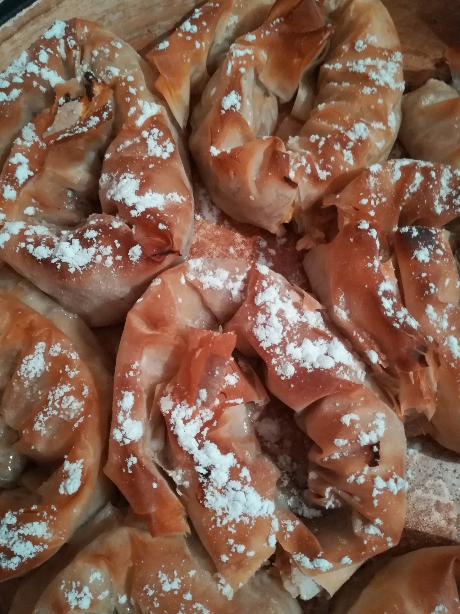 Нещо като щрудел - сурова тиква, ябълки, орехи, канела.