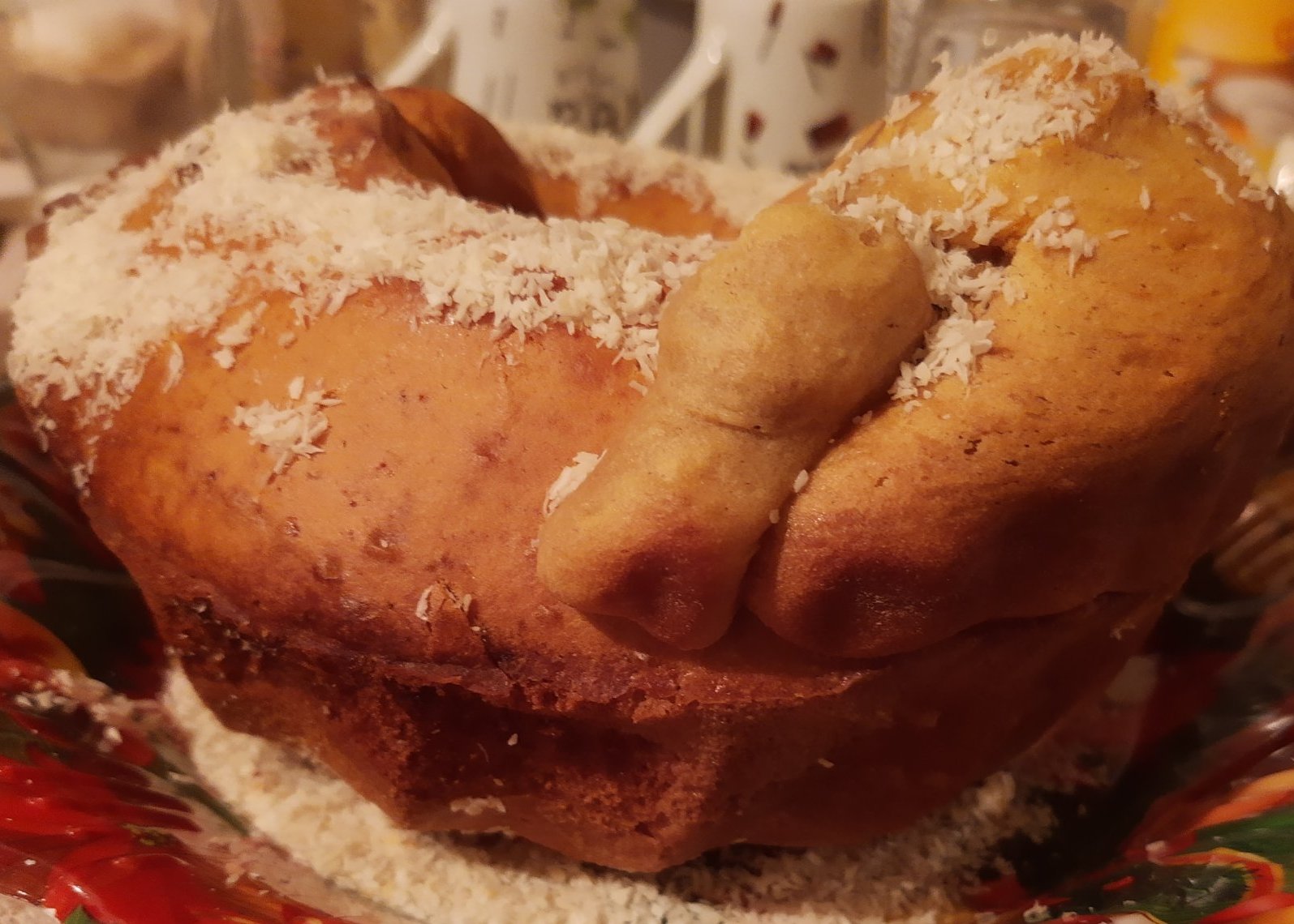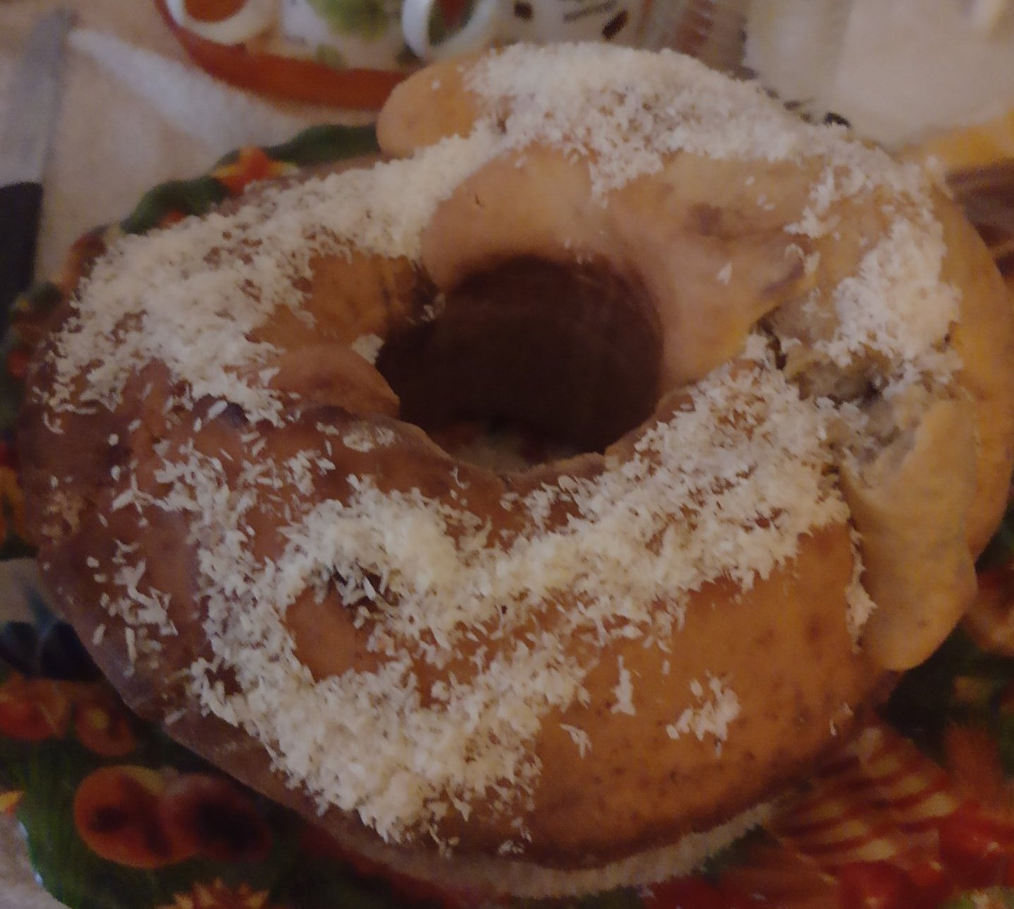 Кекс с нестандартна форма. Не знам защо така се наду повече от едната страна. Втори път правя в тая форма и пак така стана.