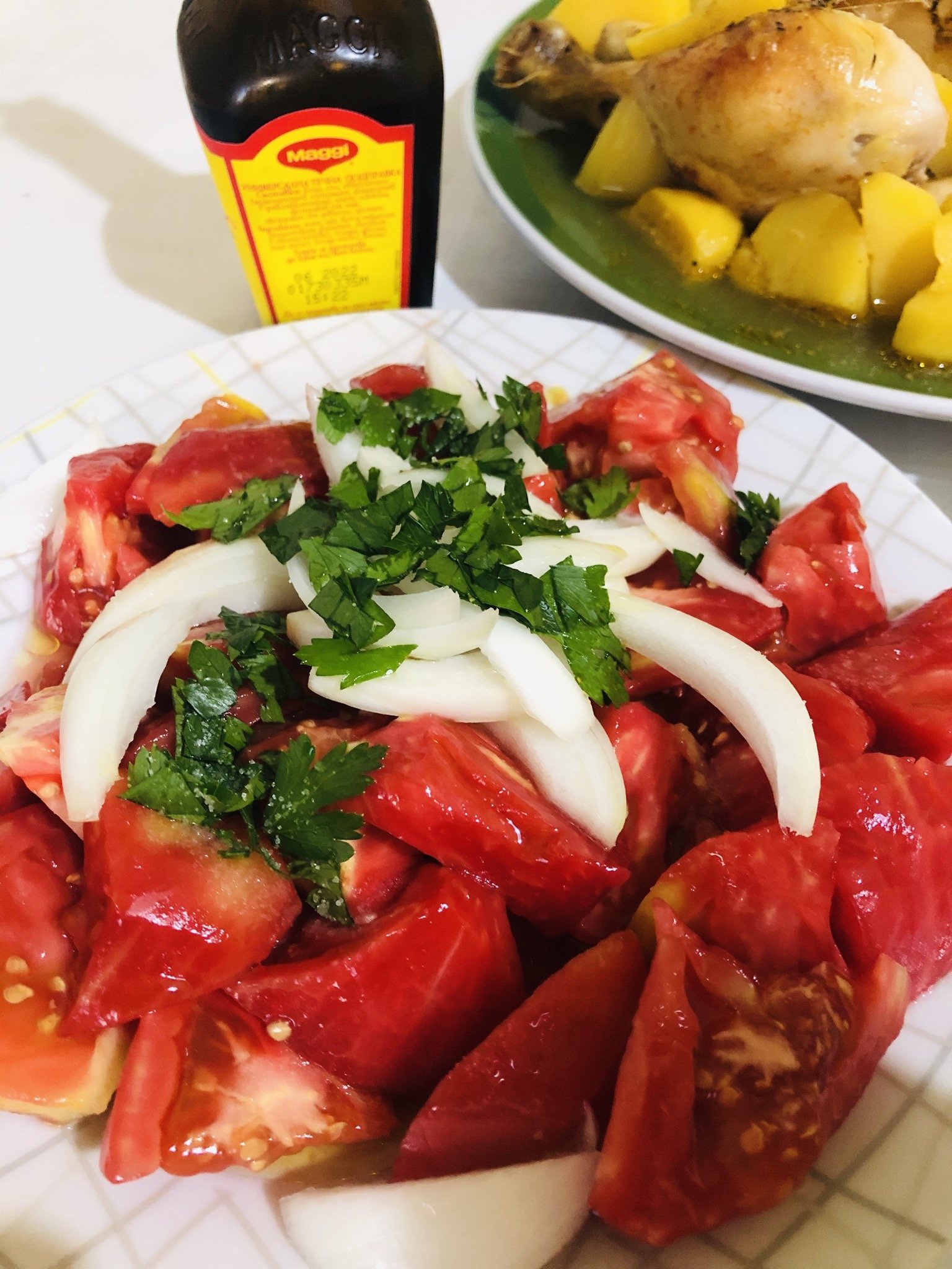 Здравейте, вечерята днес и задължителна салатка а зимнината се пече. Испитаната ми печена лютеница. да добавя и обедната ми паста карбонара