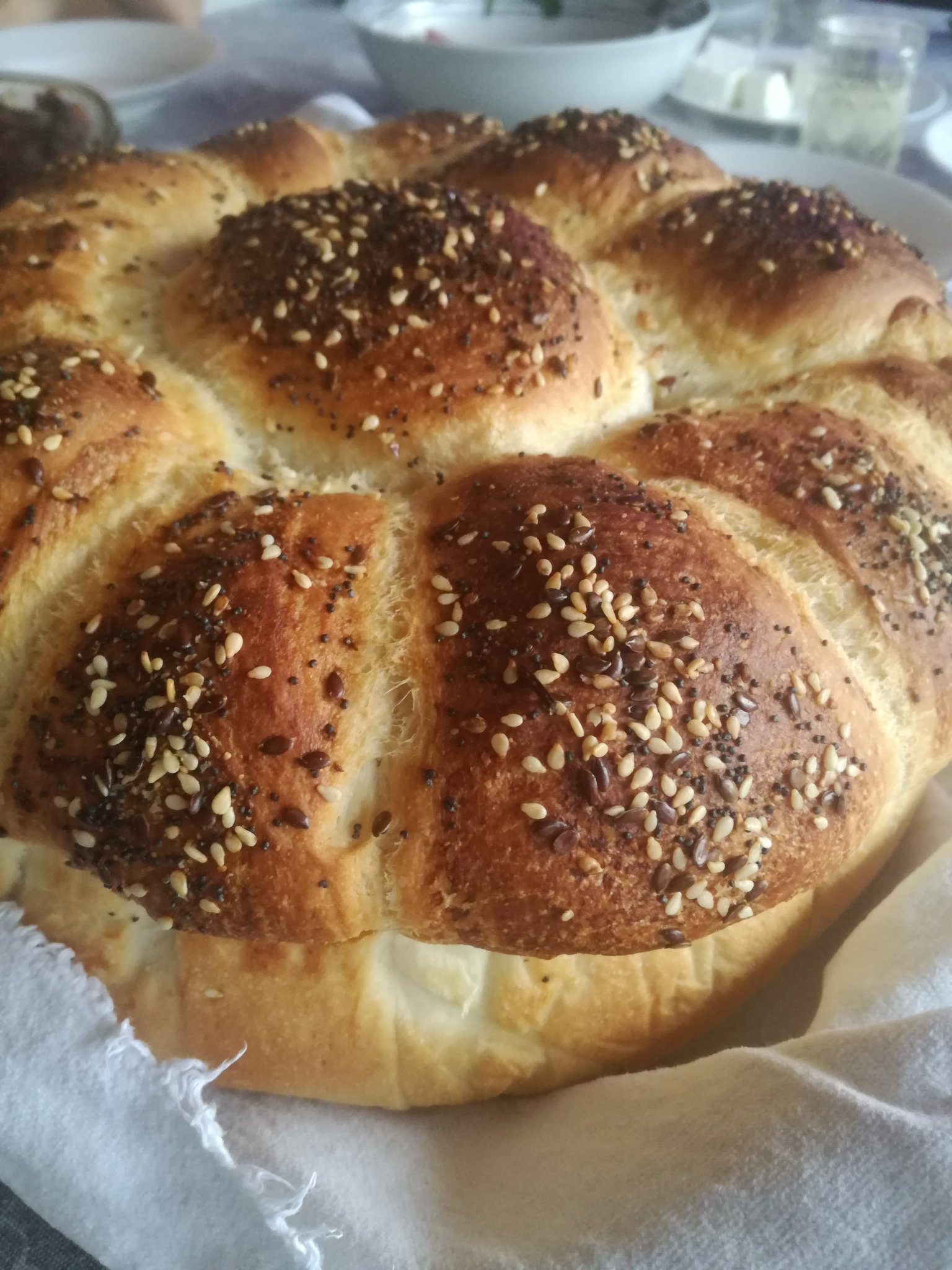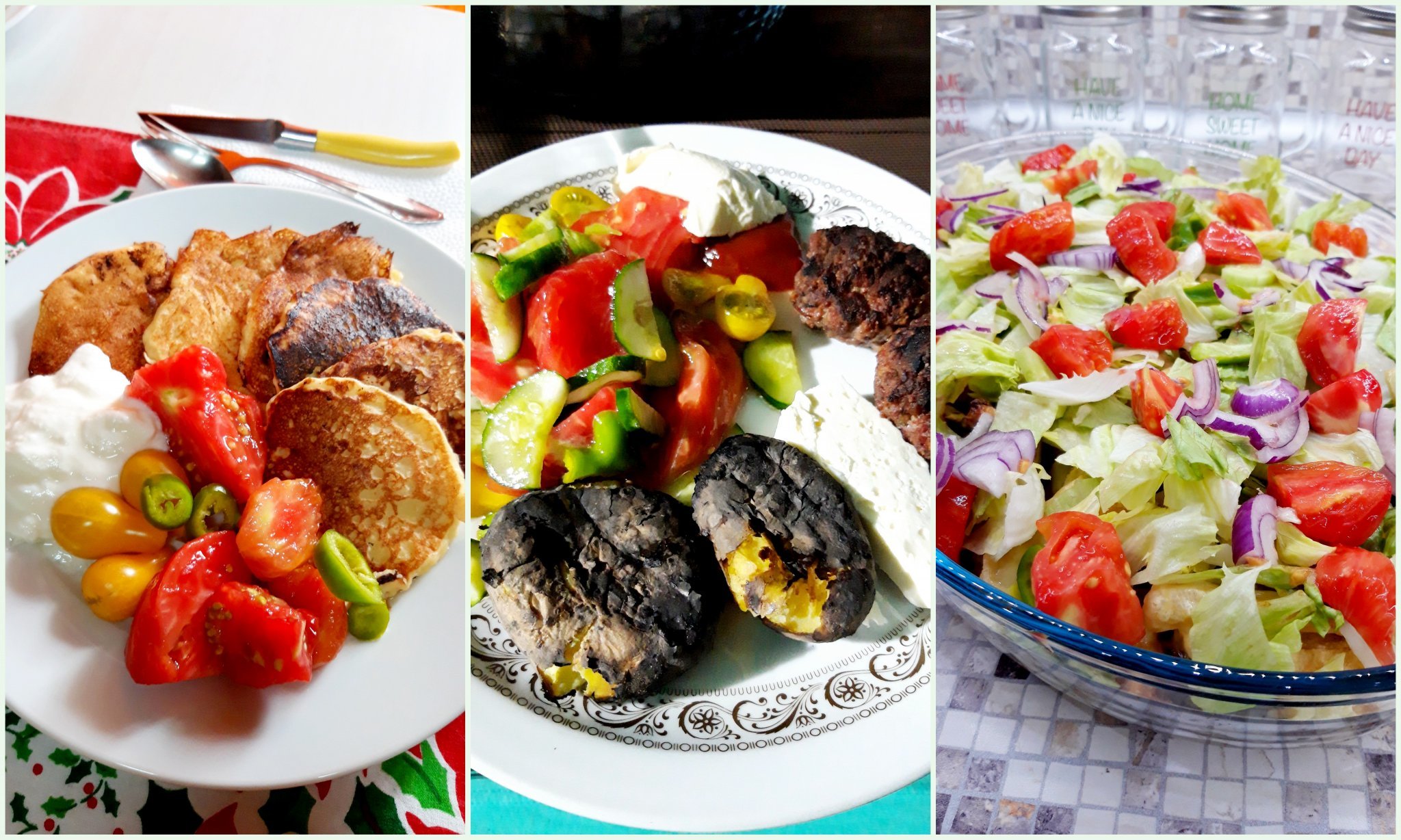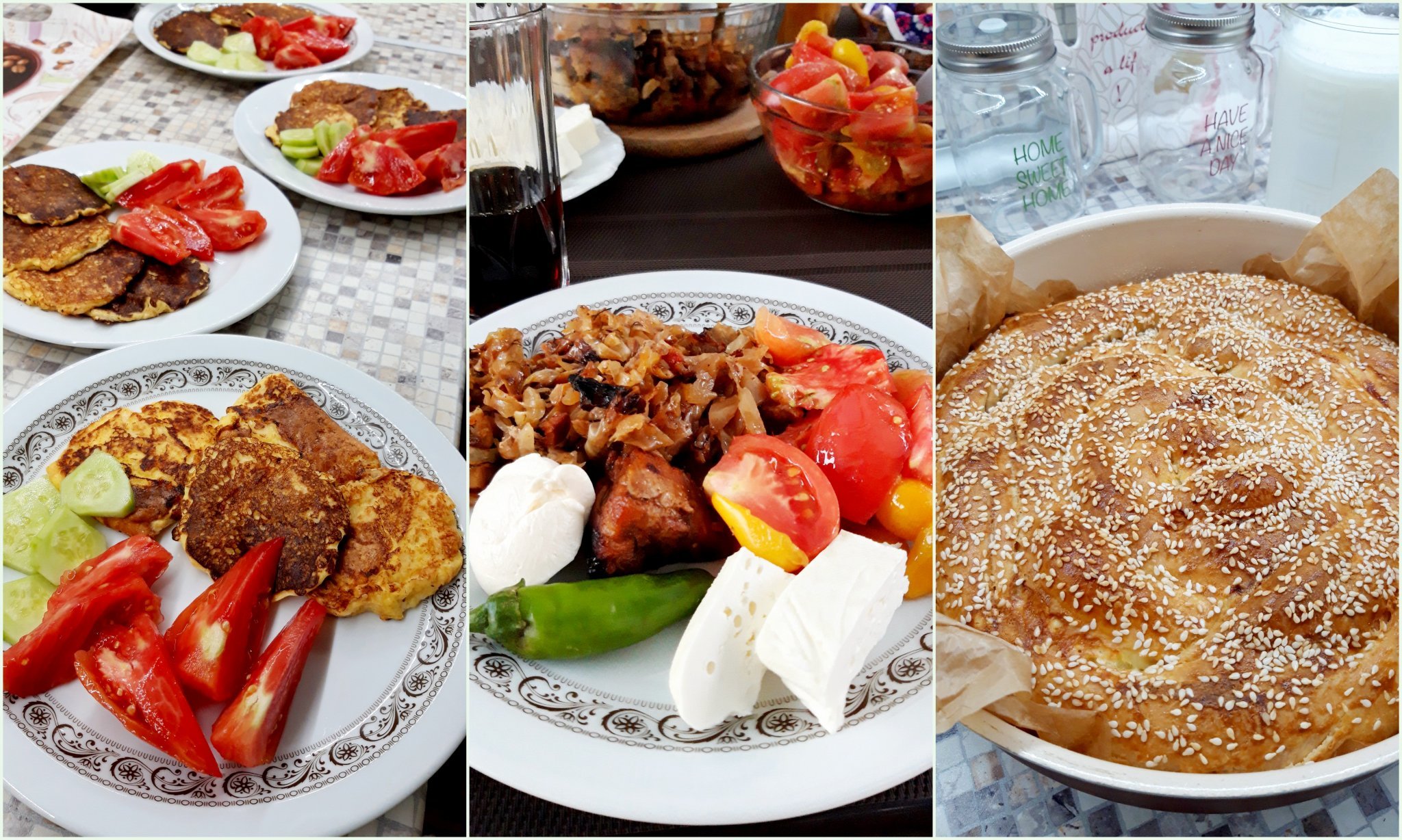 Тиганички със сирене, кашкавал, лимец, сусам; прясно зеле със свинско; пак точена баница.