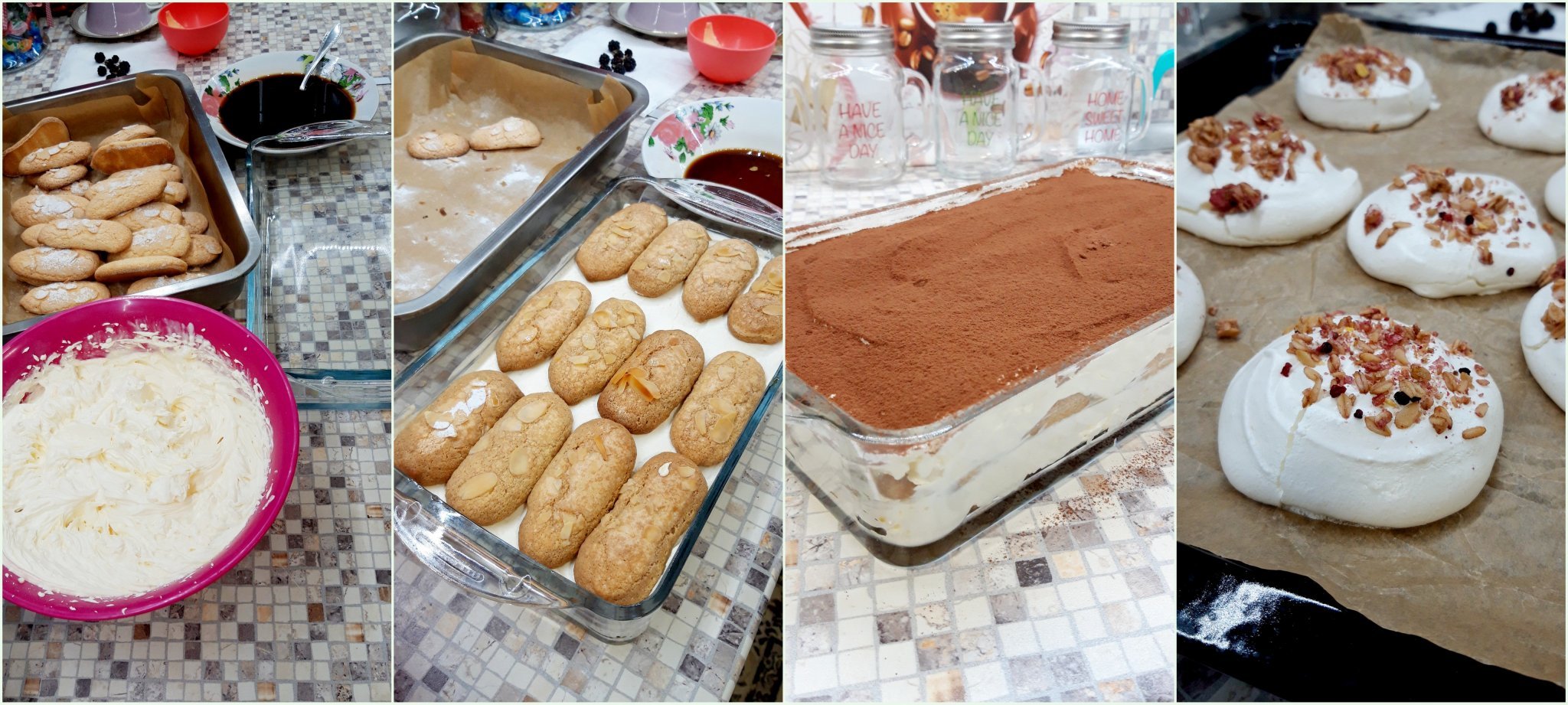 И поредното тирамису с домашни бишкоти, а от белтъците- целувки поръсени с мюсли. Докато ни втръсне 😁