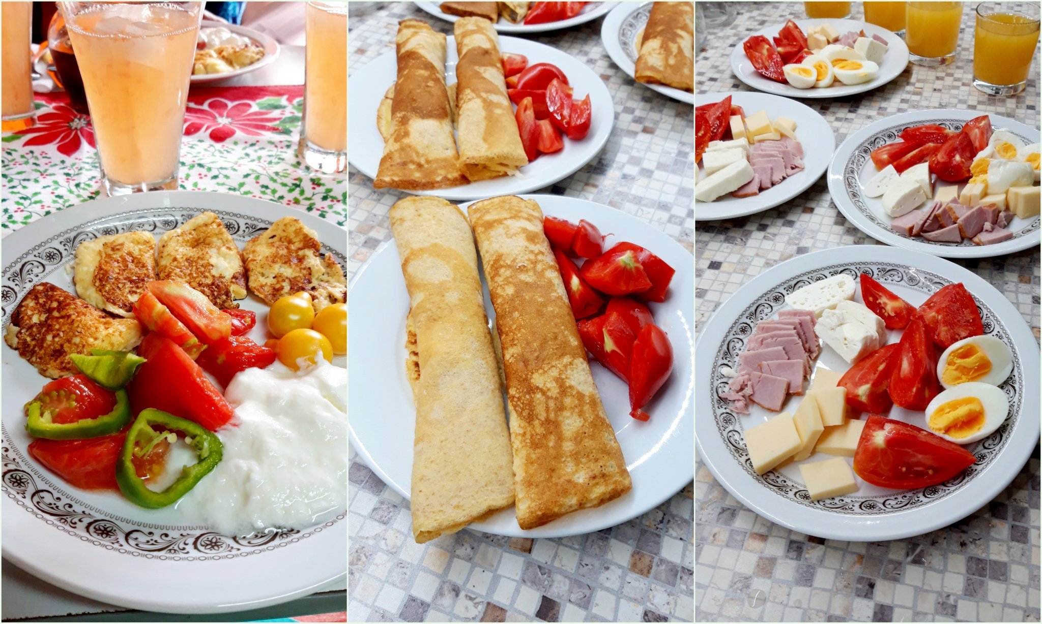 Мини омлетчета с козе сирене и кашкавал; палачинки с лимец, пълнени със заквасена сметана и кашкавал и пастет и кашкавал; закуска.