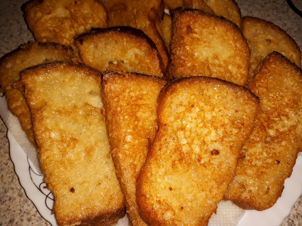 Пържени филийки.Друго си е от домашен хляб, стават чудни, хрупкави отвън, а не жилави, като от купешкия.