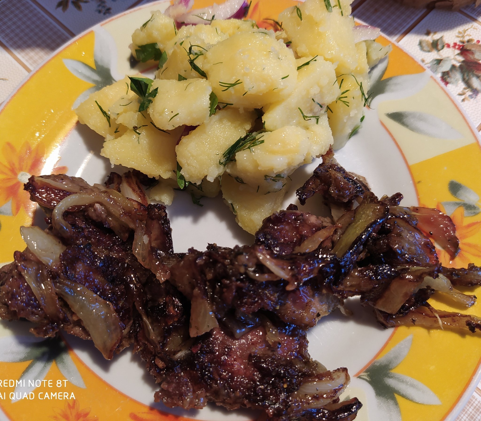 Дробчета с лук и картофена салата