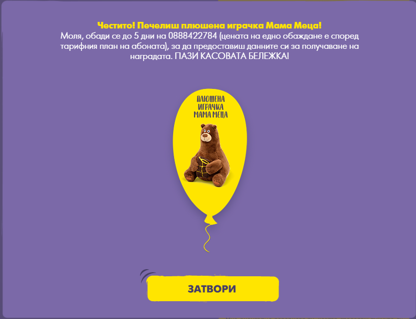 Спечелих и другата играчка на Милка, с втората си бележка: