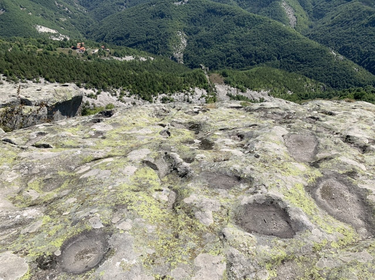 Горе ако издрапаш има огромна площадка с невероятна панорама, изключително е. Следи от еолита и жертвеници. Как са се качвали, идея си нямам.