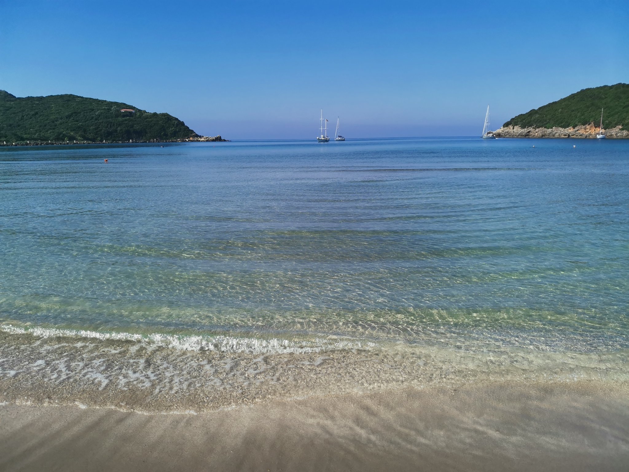 Днес на плажа Исос, Корфу. Спокойствие и бистра вода. Няма много хора, а мерките се спазват. Усещането е такова, всякаш няма никакъв Covid. Разхождайки се из лагуните се сдобихме безплатно с домашен любимец под наем с който да тичаме по брега 😁. Може би някак се бе загубил и търсеше хора с които да се върне в зоната на хотелите. Бе много ожаднял, та му дадохме от водата, която си носехме.