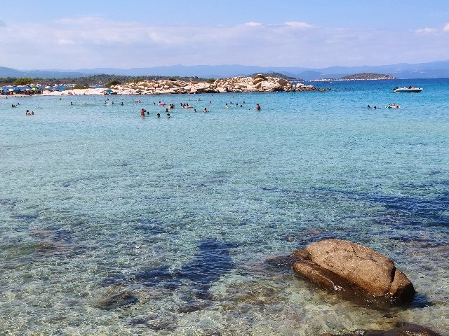 Кариди бийч в момента. Уникалното в кадъра и около него е, че наброява 478 гърци, 15 румънци, 3 българи и половин западноевропеец, но нито един сърбин или македонец. Такова чудо не съм си представял, че ще доживея - само гърци на Халкидики:-)