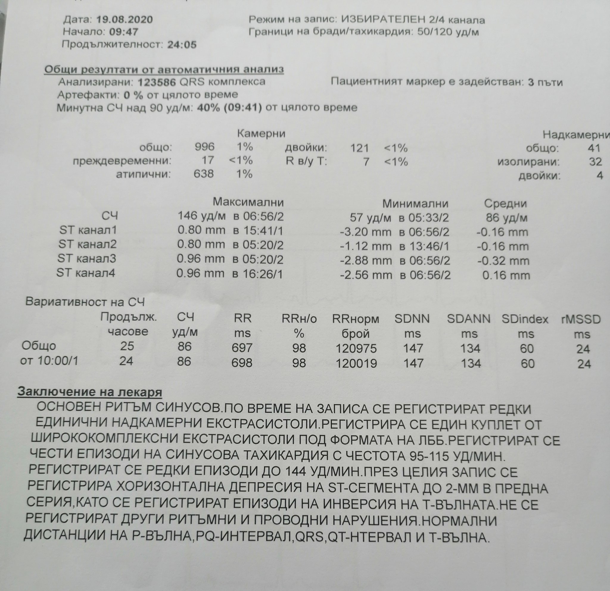 Георги, това е резултата от холера. Сега ми каза сутрин 1т от 7,5 мг Корледин, и сутрин и вечер по 1 т Тромкардин комплекс. Мисля да почна Тромкардина и ще видим... Ти как мислиш?