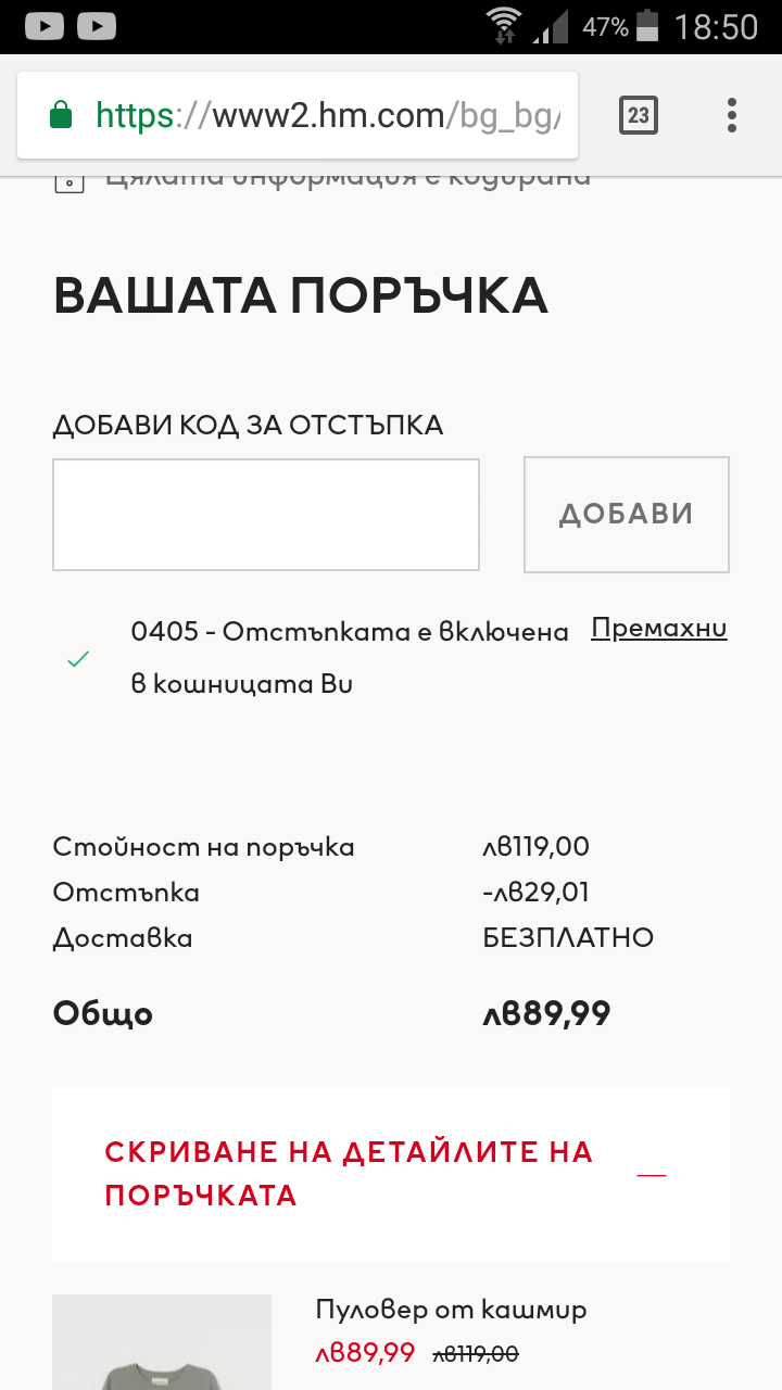 При мен на първа стъпка пише безплатна доставка, а на втората заключителна си стои.