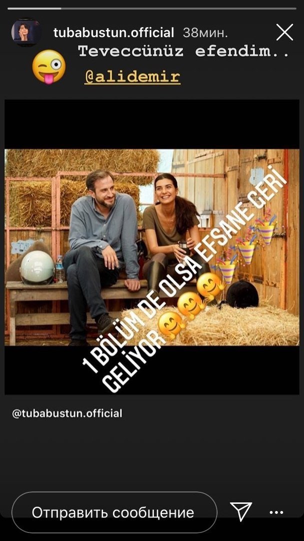 Режиссер Али Бильгин написал комментарий Тубе в инстаграм #TubaBüyüküstün