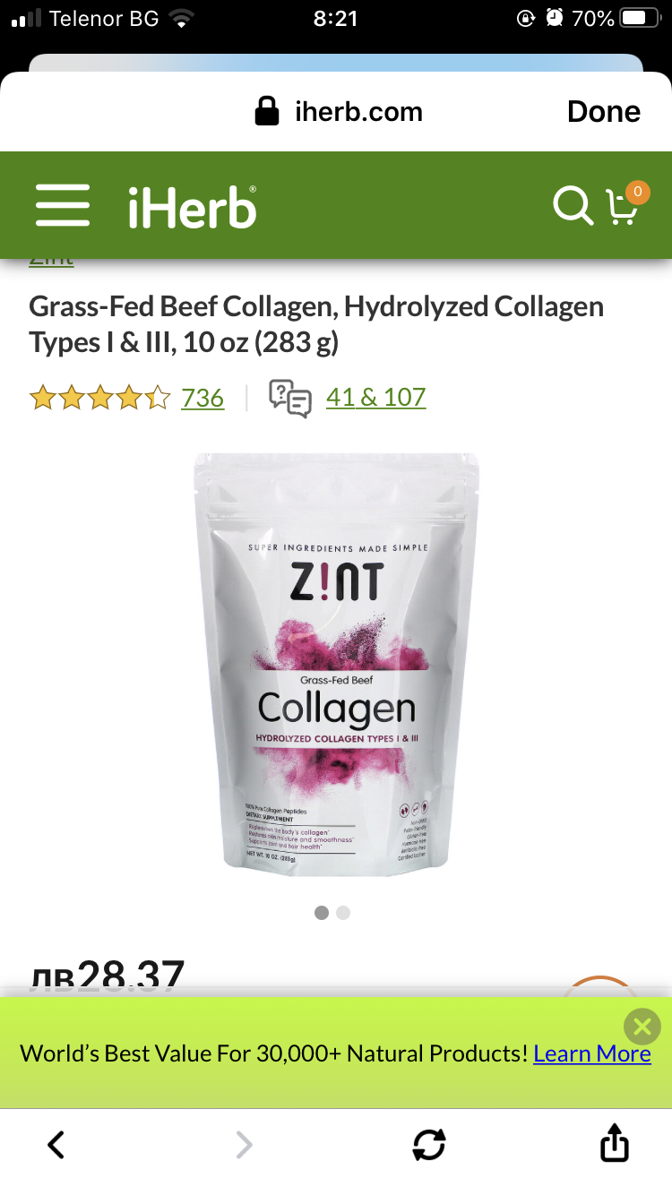 В момента точно не пия, защото ми свърши и пак ще си поръчам. Ето такъв ми беше препоръчала Денис в темата за iherb, производителят е потвърдил, че става за бременни. Иначе вчера точно ядохме супа с телешки костен бульон, пак е много хубав вариант за набавяне на колаген. Продава се в буркани на места и по фермерските пазари. Ние в случая си направихме сами, но сме и купували.