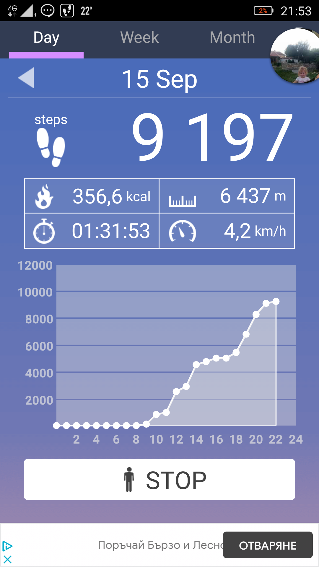 Ето днес това съм изминала,като терефона не през цялото време е бил в мен.И днес не ви е от вървежните дни😁