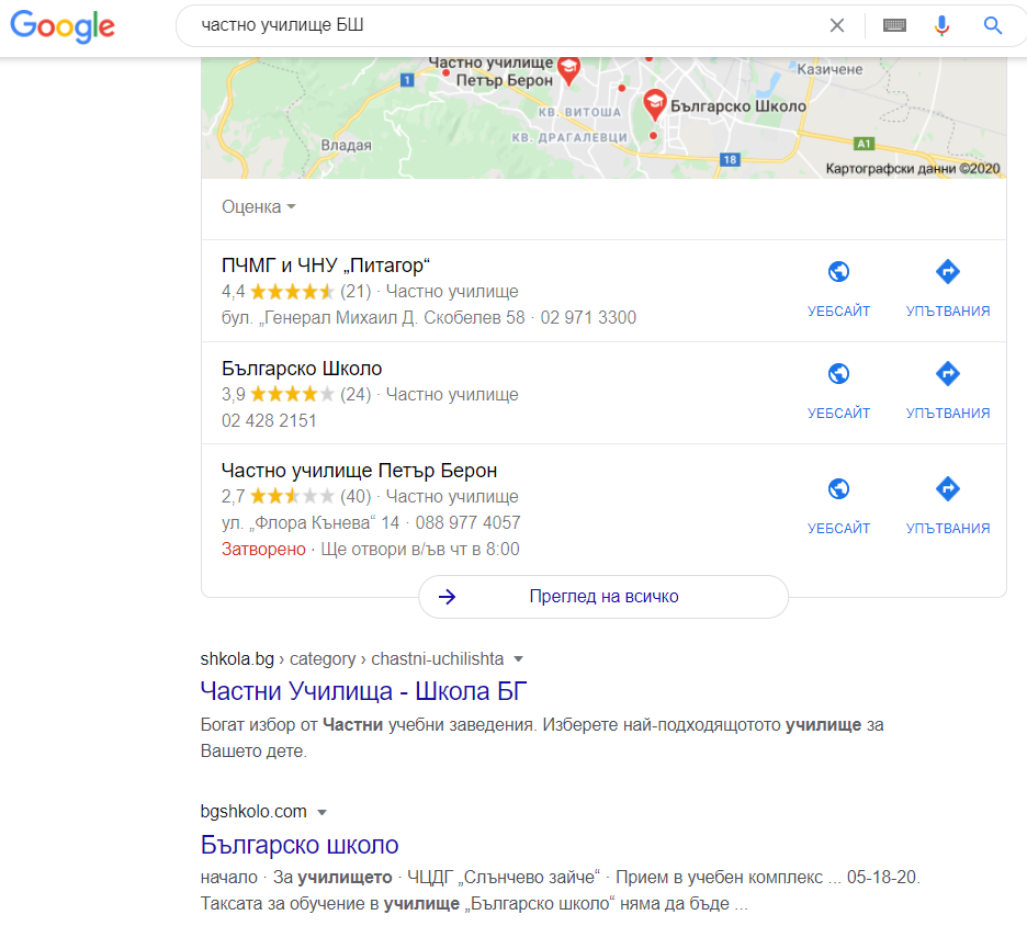 Нaписaх за проба частно училище БШ в Гугъл и веднага излязоха резултати за Българско школо. Wink