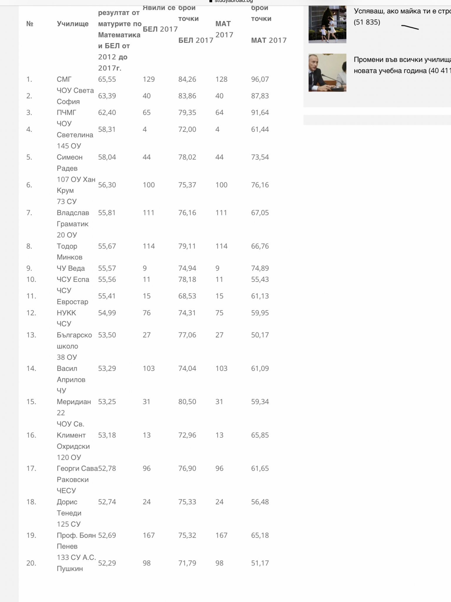 Фигурира ли тук?  . Или в топ 20: https://studyabroad.bg/news/топ-20-на-столичните-училища-според-резу/. Не се отваря линка. Ето снимка: