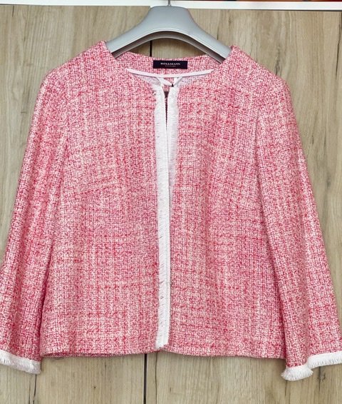 Купих си от Ролман много сладко розово-бяло, тип “Шанел” и 7/8 ръкави, от нещо като букле.