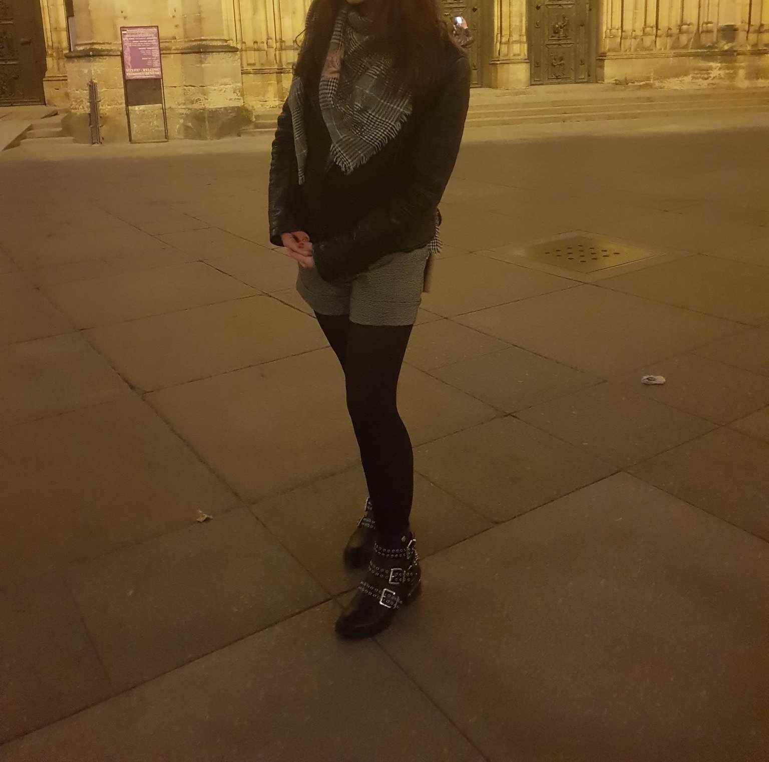 На друг човек ми харесват много тези къси панталони с плътни чорапогащници или клин, но аз нямам навика да нося, може би защото няма къде. Но сега се замислям, че за градска разходка, сред разни забележителности си е много подходящо облекло, с ниски обувки или кубинки в съчетание.