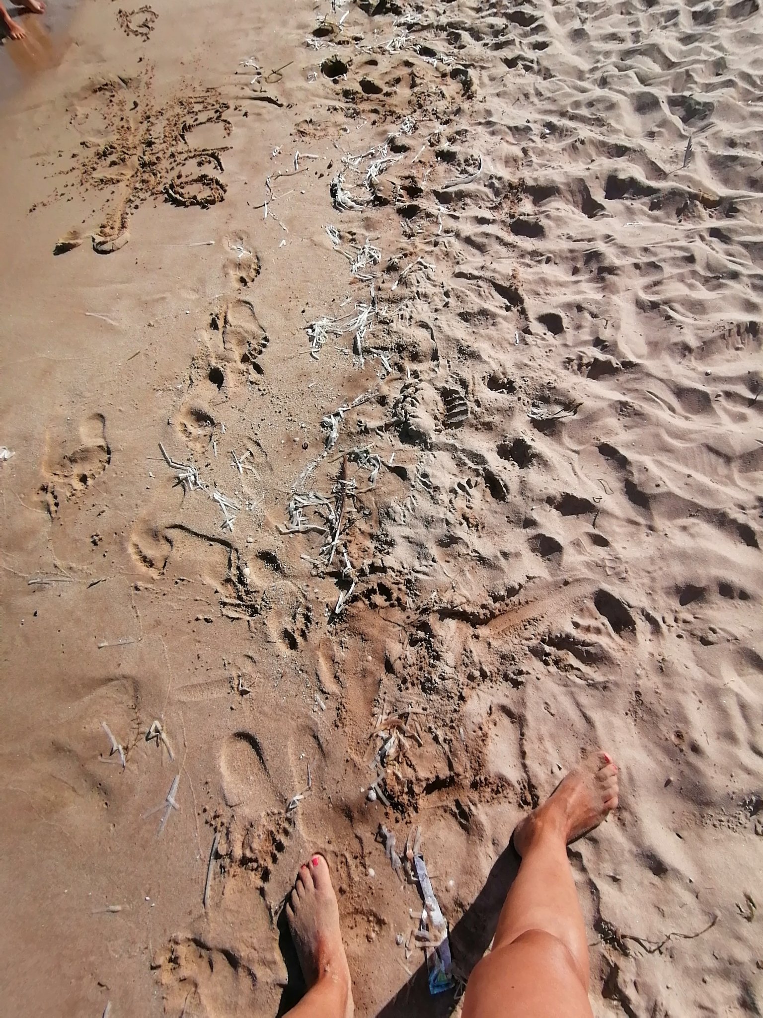 От четвъртък по плажа на Албена излязоха бели пластмасови ленти, днес са доста повече. А морето е доста мръсно и плуват боклуци.