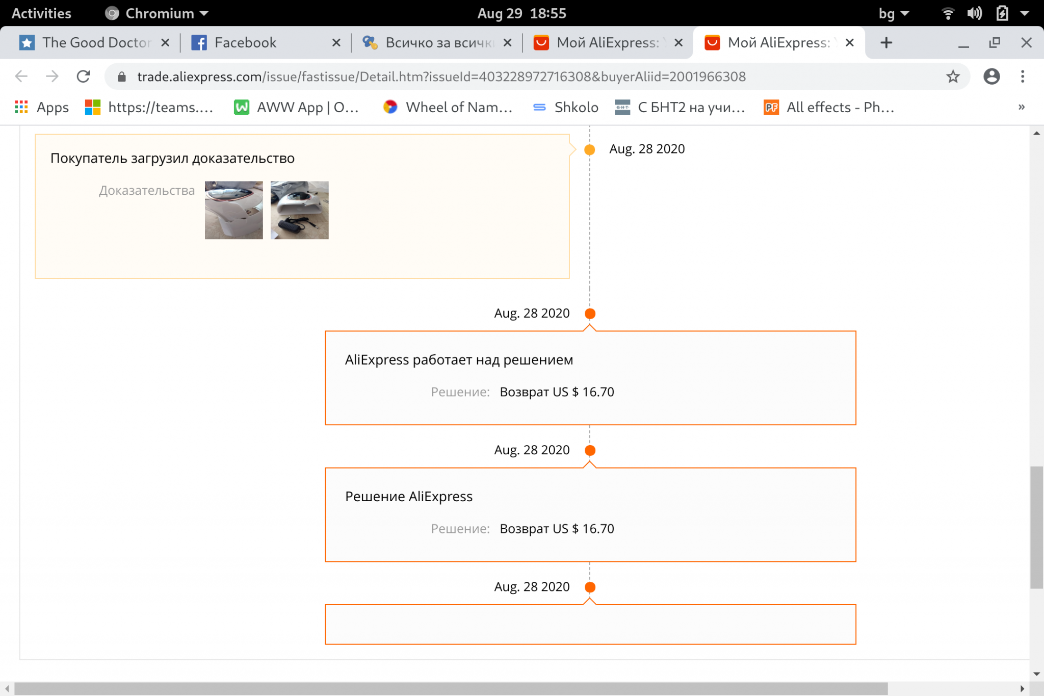 Вчера, по съвет на принцесата, вечерта пуснах диспут за лампата. Продавача нищо не е писал. Писано е само от Алиекспрес. Диспута е закрит ... Това пише: