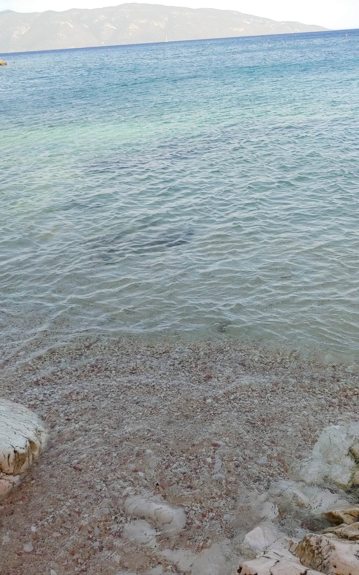 Привет, вчера се настанихме в Агия Ефимея. Тук от ляво на пристана има поредица от стъпала, които водят към скали, от които може да се влезе в морето. На две места имаше и миниатюрни плажчета с шарени камъни.
