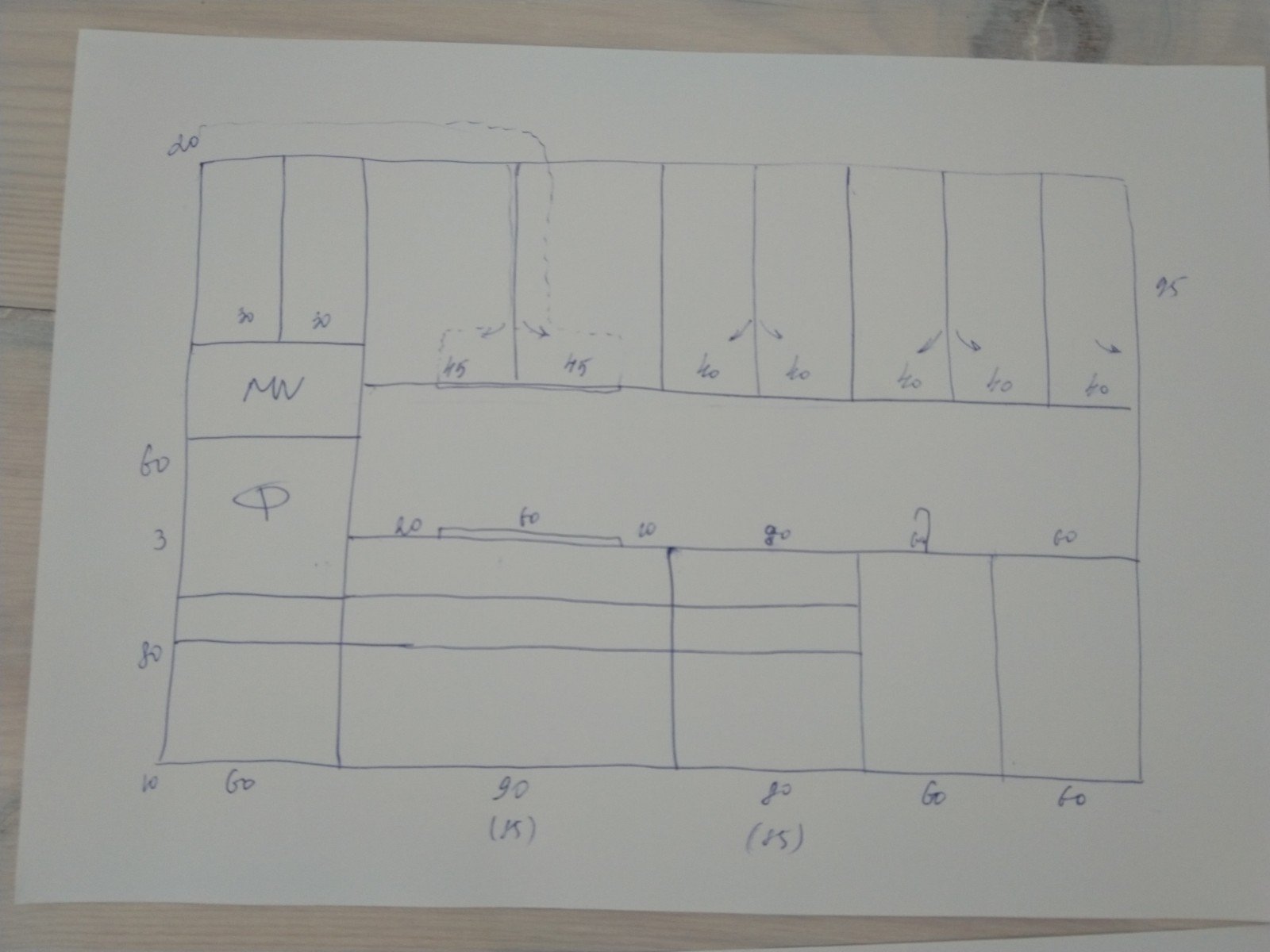 La_Valletta, мога да отговоря само за ширината. Моите горни вратички са по 55 и 60 см и то по два броя, с височина 73 см, защото под тях имам рафт. Над горните шкафове имам около10-12 см отвор. Отварянето настрани с тези ширини при мен не е никакъв проблем, но си представих да са ми с дължина 90 см и веднага се съгласих с мандаринка за удрянето - ще е почти гарантирано Wink