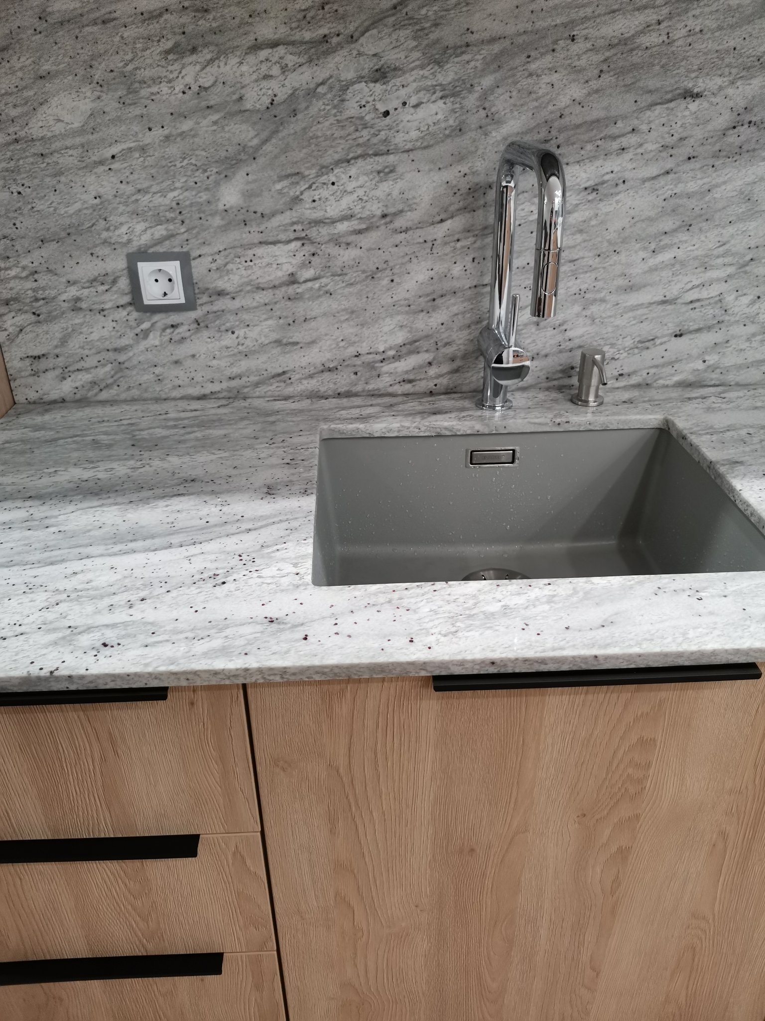 И на мен повече ми харесва с гръб и плот от еднакъв камък, но при голяма кухня (каквато е нашата) финансите също са фактор...