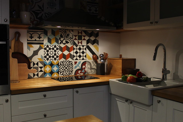 Пачуърк плочките са практични, не им личат пръските и фугите. Нямам идея дали уморяват окото и няма да омръзнат, но са весели.