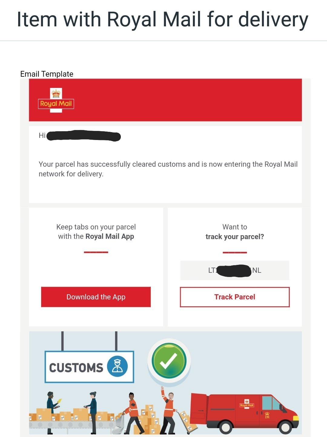 И аз мисля, че това съобщение е просто информативно, защото използвате апа на  royal mail за проследяването може би. Но ако стане гаф, от сайта възстановяват все още такси и ддс.