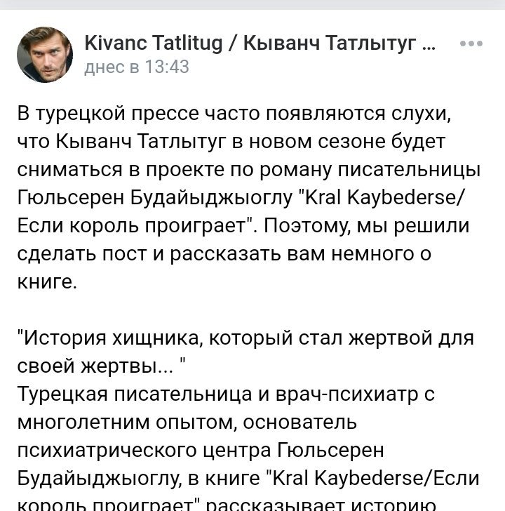 В турската преса често се появяват слухове, че Къванч Татлъту ще участва в проект, базиран на романа „ Kral Kaybederse / Ако кралят загуби“ от писателката Гюлсерен Будайчиолу през новия сезон. Затова решихме да направим публикация и да ви разкажем малко за тази книга.