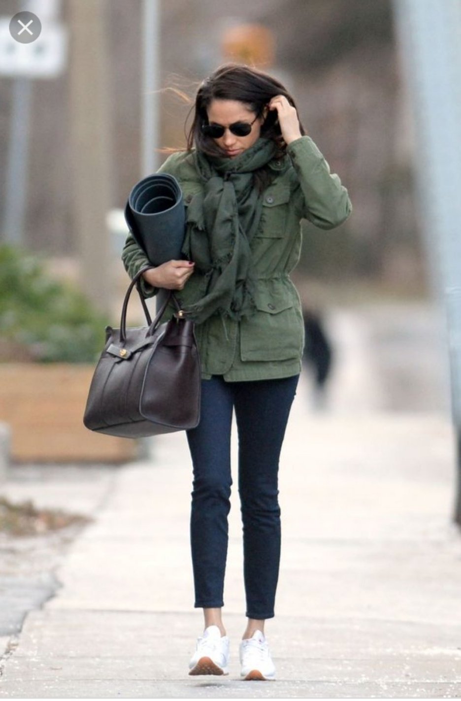 Да, ризата е от нейна колекция, но не е онази от Уимбълдън - Тя е с по-едри райета сякаш. Още папарашки снимки на Меган как отива на йога Grinning
