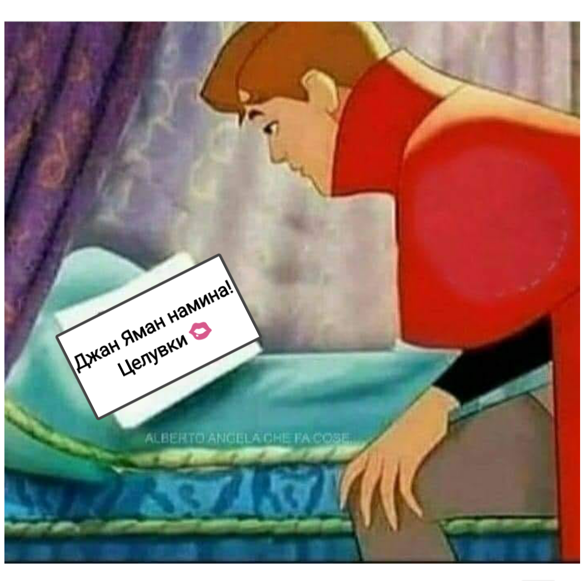 Това го откраднах от италианките. Принцът пристигнал да събуди спящата красавица, но се оказало, че ЛОШИЯТ КРАЛ е наминал по-рано... Еми, сори!