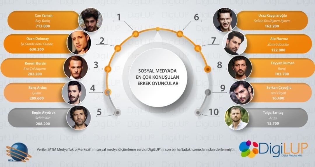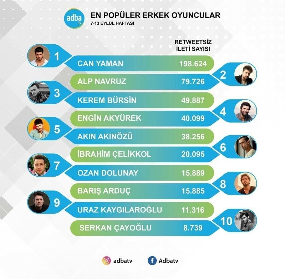 По данни на социалните мрежи  най - споменаваният Актьор в периода 7 - 13 септември е Джан Яман