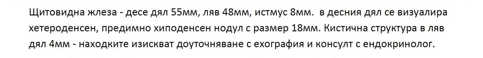 Да... ама не. След като ме размотаваха напред назад ми писна и отидох на комп. томограф да види всичко по врата и към дробовете. Всичко беше идеално, но не съвсем (без коментар правописните грешки, но така го дадоха):