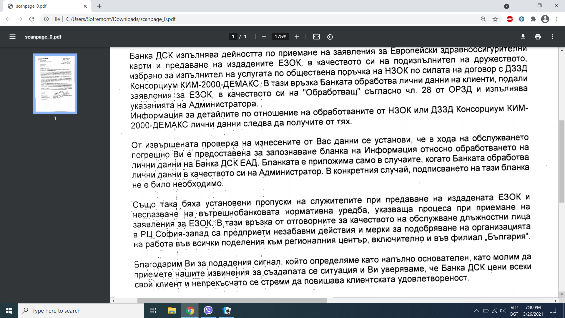 Повечето служителите на ДСК не са наясно какво точно трябва да поискат, при подаване и получаване на ЕЗОК, затова се "застраховат". От миналата година се опитват да ми искат и подписване на бланка за съгласие за обработка на лични данни, а това НЕ им е необходимо.