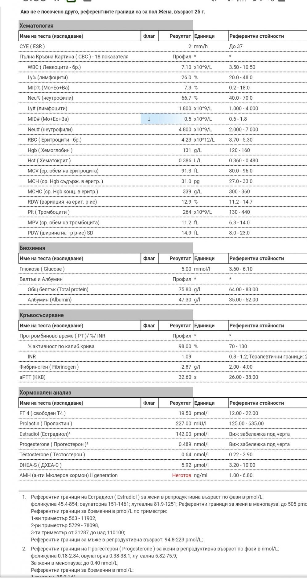 Това са ми изследванията за естрадиол и прогестерон.
