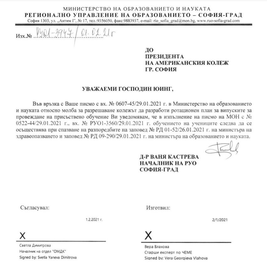 Ами Колежът са се опитали, не са им разрешили. Имаше и писмо от администрацията по този въпрос.