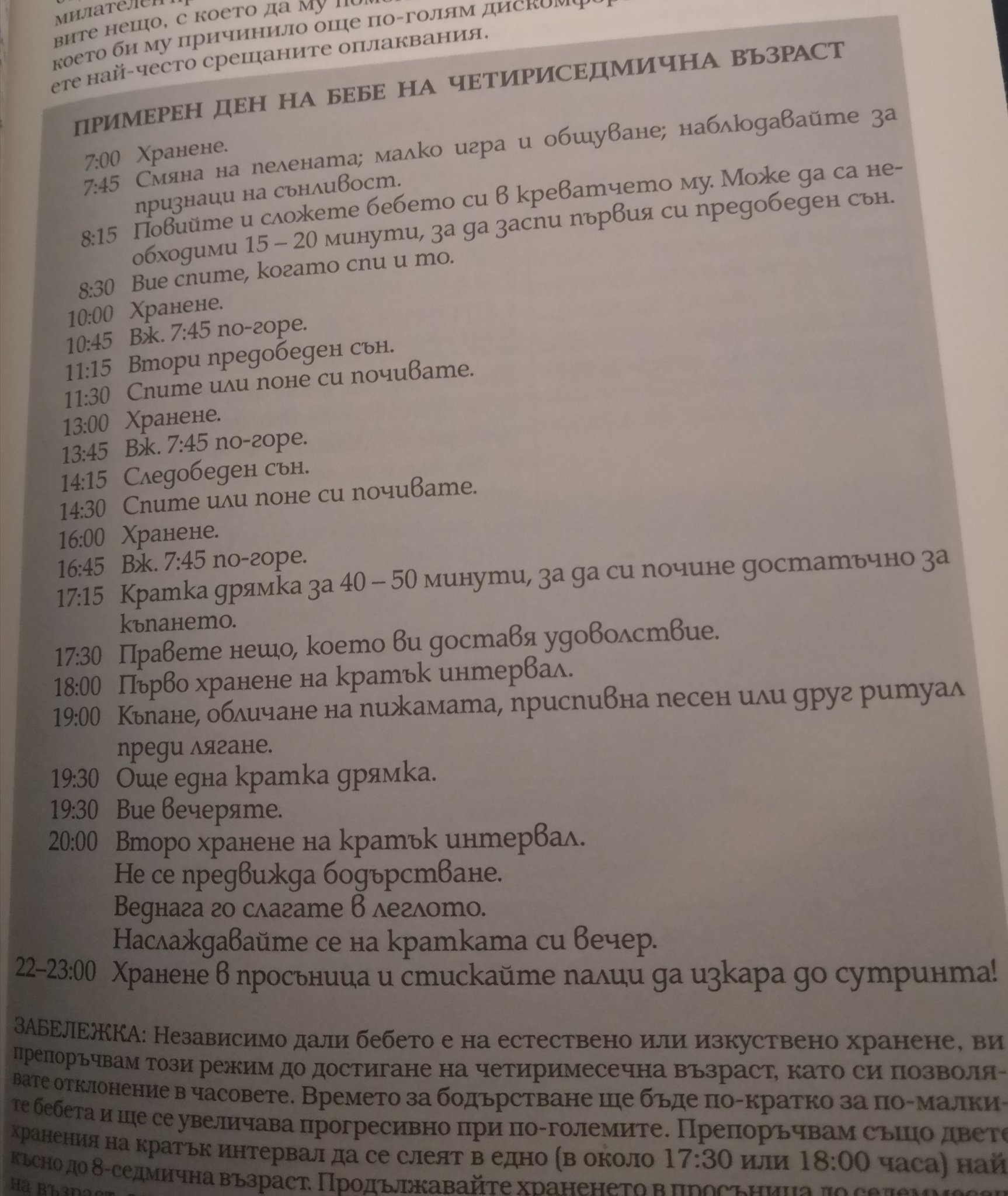 Аз още не съм излизала на разходка, че докато да излезем и трябва да се връщаме, защото аз съм от срамежливите и няма да мога да я кърмя навън, макар че това не е нещо от което човек трябва да се притеснява, но аз съм си такава. Тези дни отново е много ревлива и пак търси да яде на 1 час няколко пъти през деня, а преди това приключва храненето с рев и видимо гладна при положение, че усещам, че има кърма (гърдите не омекват и я чувам да преглъща преди да спре да суче макар и не всеки път). Тя сякаш изпуска зърното и после не иска да започне да суче. Опитвам се да я успокоя, но започва да плаче в момента, в който тръгна да я слагам в позиция за кърмене. А през нощта и сутринта няма проблем. Мисля си че може да е от колики или пък следобедите да му намаля кърмата и ако й тече по-бавно затова да се нерви. Не знам. Ще видим какво ще стане.