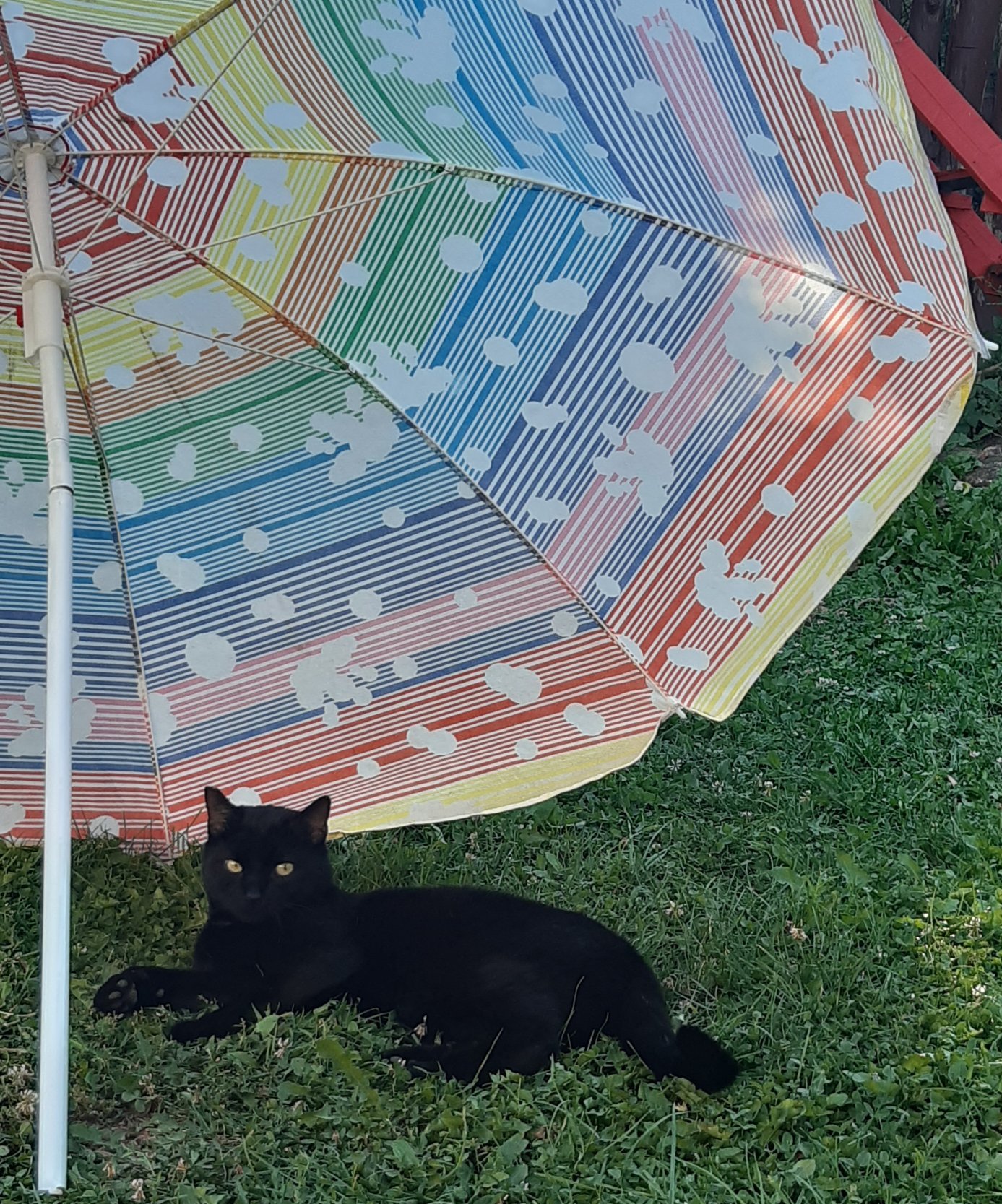 AnyHr, когато се прибера с мокър чадър и го разтворя някъде да съхне, веднага се намира някой да легне под него по същия начин като Блеки.  Laughing