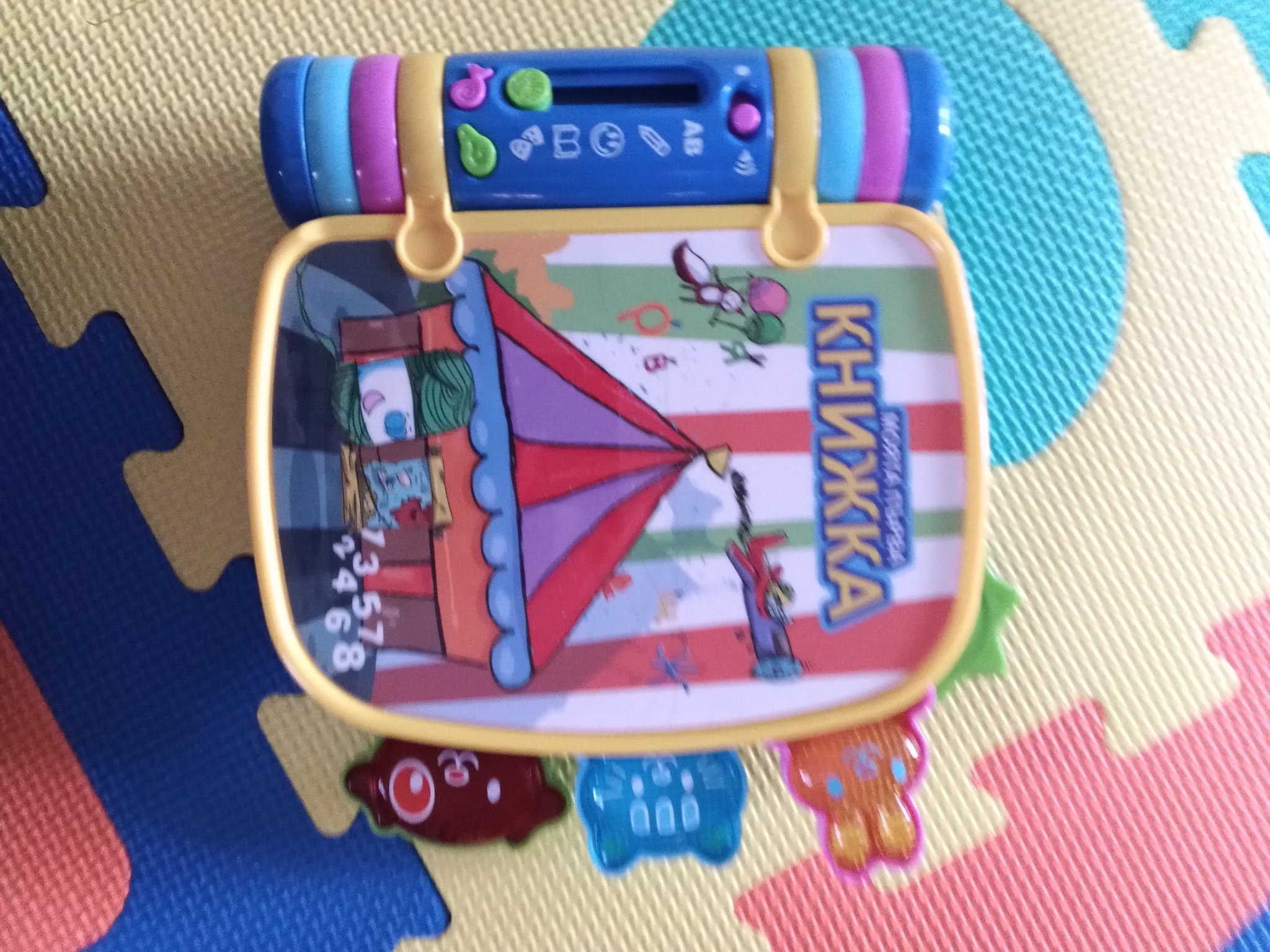 Да ви препоръчам една книжка, купихме я от Джъмбо. Някой я беше споменал по-назад, но я нямаше в наличност никъде. Цялата е пластмасова, става за ядене 😄 На всяка буква има звуци на съответните животни, пее песни, разказва истории, свети.Има игуана и Йоркширски териер 😄 Абе чак на мен ми е интересна..