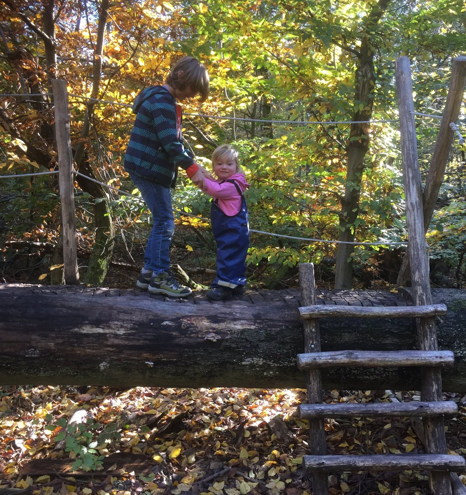 Близо до нас са направили горска пътека, където една буря е съборила дървета. И двамата се забавляваха.