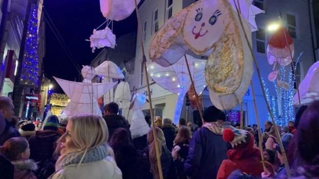 Празничните тържества бяха водени от парад с фенери, който беше придружен от хор, пеещ коледни песни.