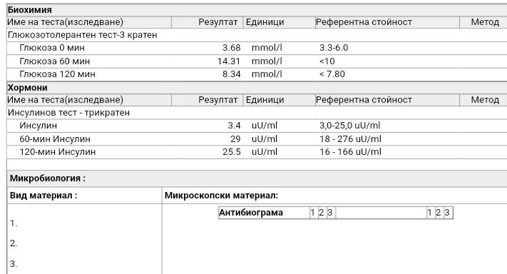 Име на теста(изследване)       Резултат      Единици   Референтна стойност   Метод