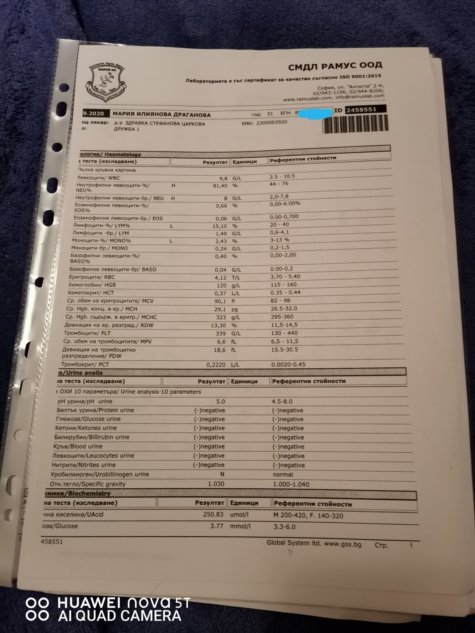 Здравейте, може ли разчитане на следните резултати? Благодаря предварително.