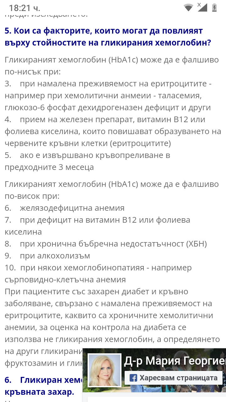 Четох че гликиран хемоглобин под норма може да лъжливо под норма от прием на фолиева киселина,желязо и В12, а аз и трите ги пия. Възможно ли е да е нисък от тях?